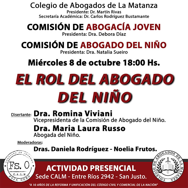 "Comisión de Abogacia Novel a/c Dra. Viviana Luna, Comisión de Abogados del Niño a/c Dra. Natalia Sueiro"